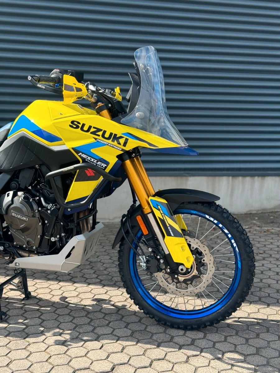 Zum Verkauf steht eine brandneue Suzuki DL800DE aus 2026 in Gelb - als exklusive Desert Express Edition by Hessler mit umfangreichem Umbau für echte Adventure- und Offroad-Enthusiasten.